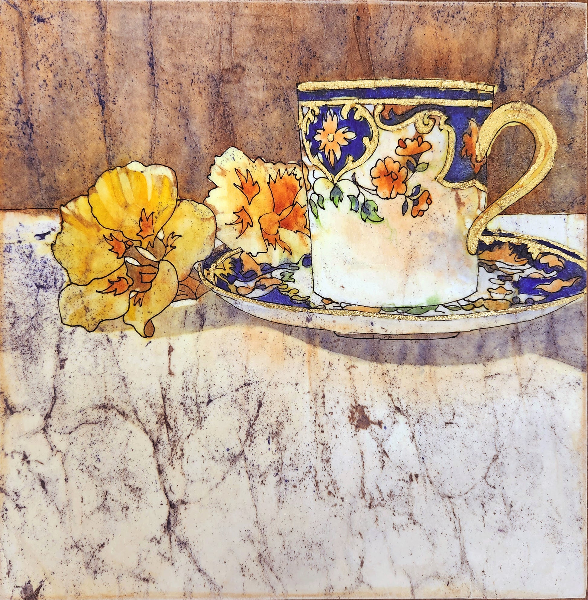 Medium: Batik, gold leaf